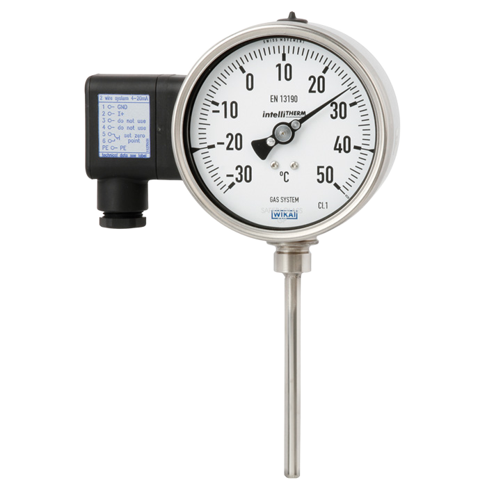 3. ترانسمیتر دما (Temperature Transmitter): این نوع گیج دما به عنوان یک ترانسمیتر عمل میکند و دارای امکاناتی نظیر تبدیل دما به سیگنال الکتریکی و ارسال این سیگنال به سیستم کنترلی است. ترانسمیترهای دما معمولاً دارای کالیبراسیون دیجیتال، قابلیت ارتباط بیسیم و امکان کنترل از راه دور هستند.